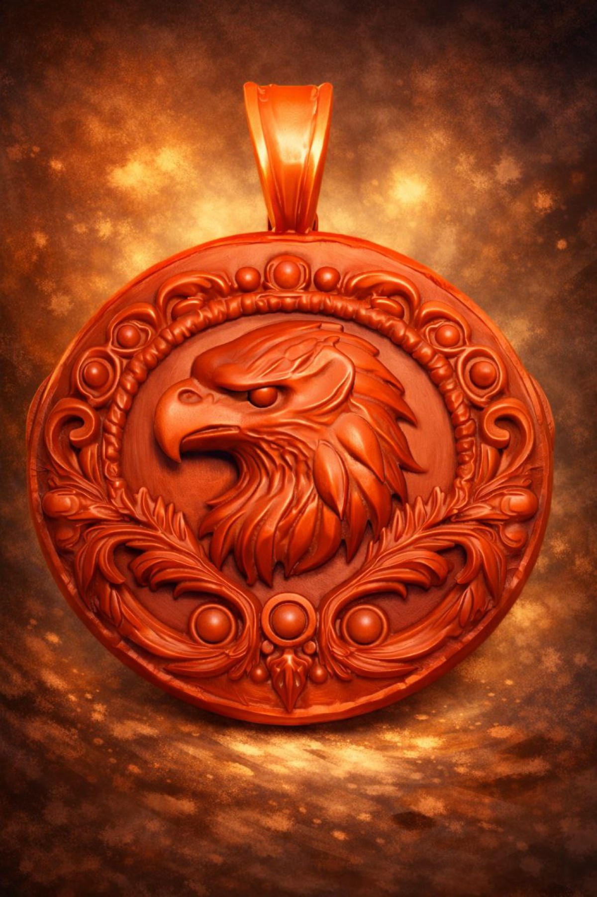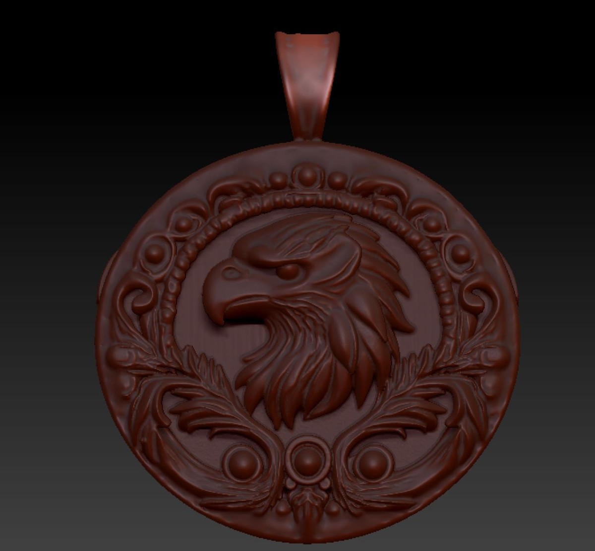 This detailed 3D pendant features a powerful eagle head in high-relief style, surrounded by ornamental elements and a classic round frame. The design is suitable for jewelry manufacturing such as CNC milling, carving, casting, or 3D printing.